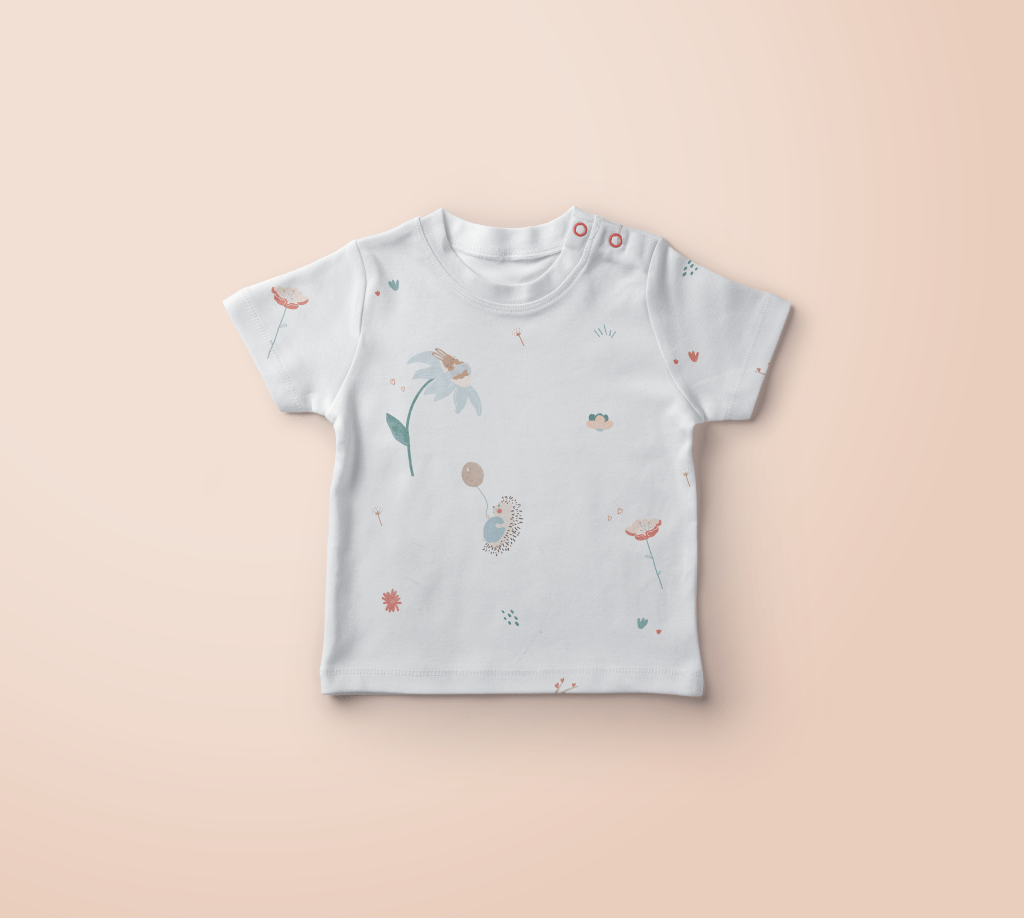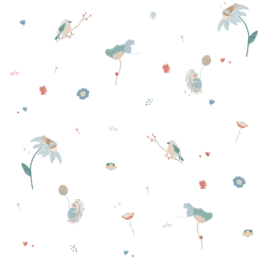 J’ai proposé un motif floral avec quelques animaux doux et poétique pour faire rêver les enfants